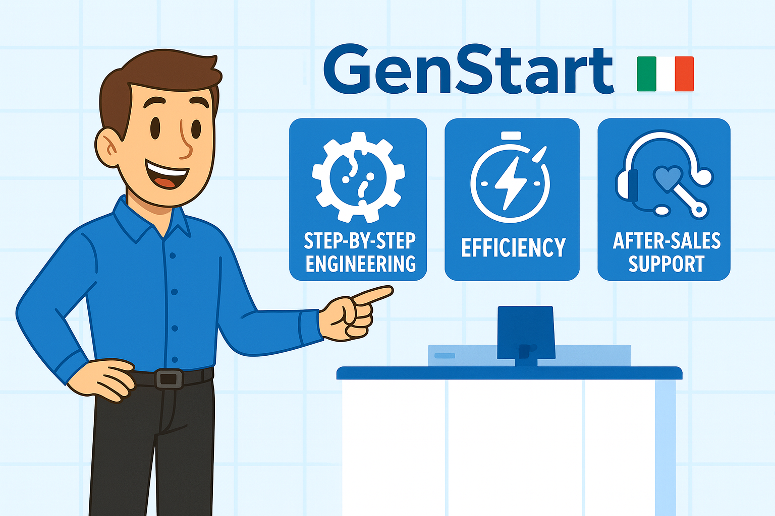 GenStart si pone come partner affidabile e innovativo nei confronti del cliente e non solo come fornitore, cercando di creare un rapporto di collaborazione sfruttando il nostro know how nell’interesse di entrambe le parti, cercando sempre la soluzione migliore e più efficiente
